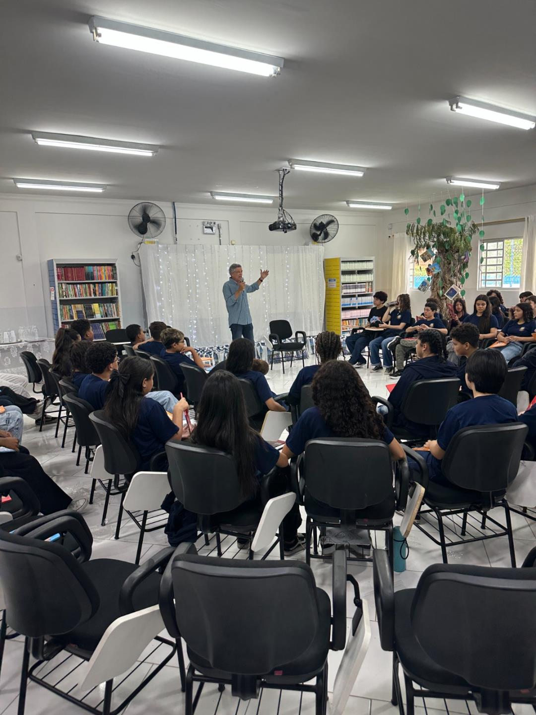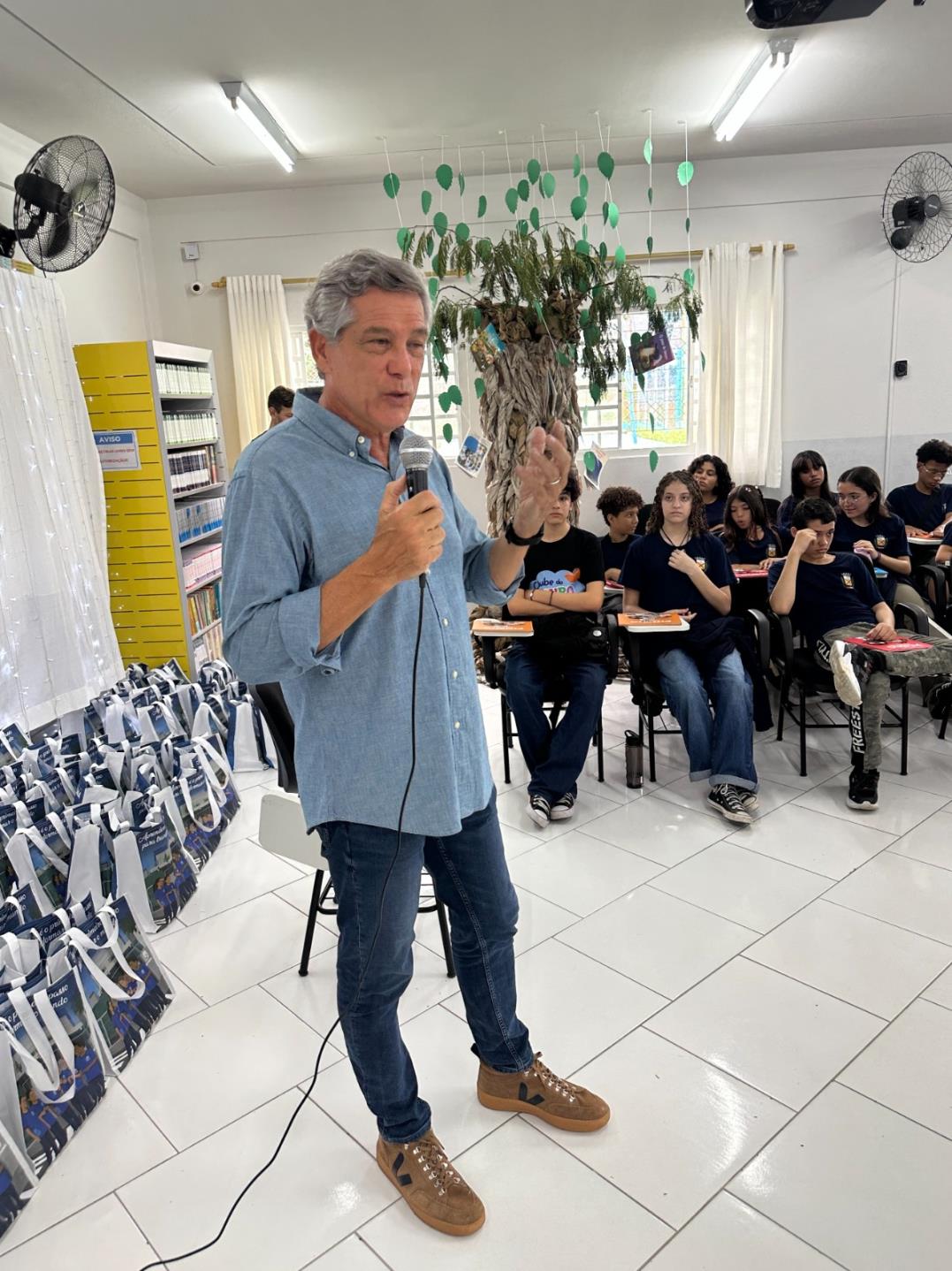 O evento principal aconteceu na Escola Municipal Professor João Orsi de Morais, que recebeu a visita especial do escritor Fábio Quinteiro, autor de parte dos livros que compõem o projeto, além de autoridades do município.