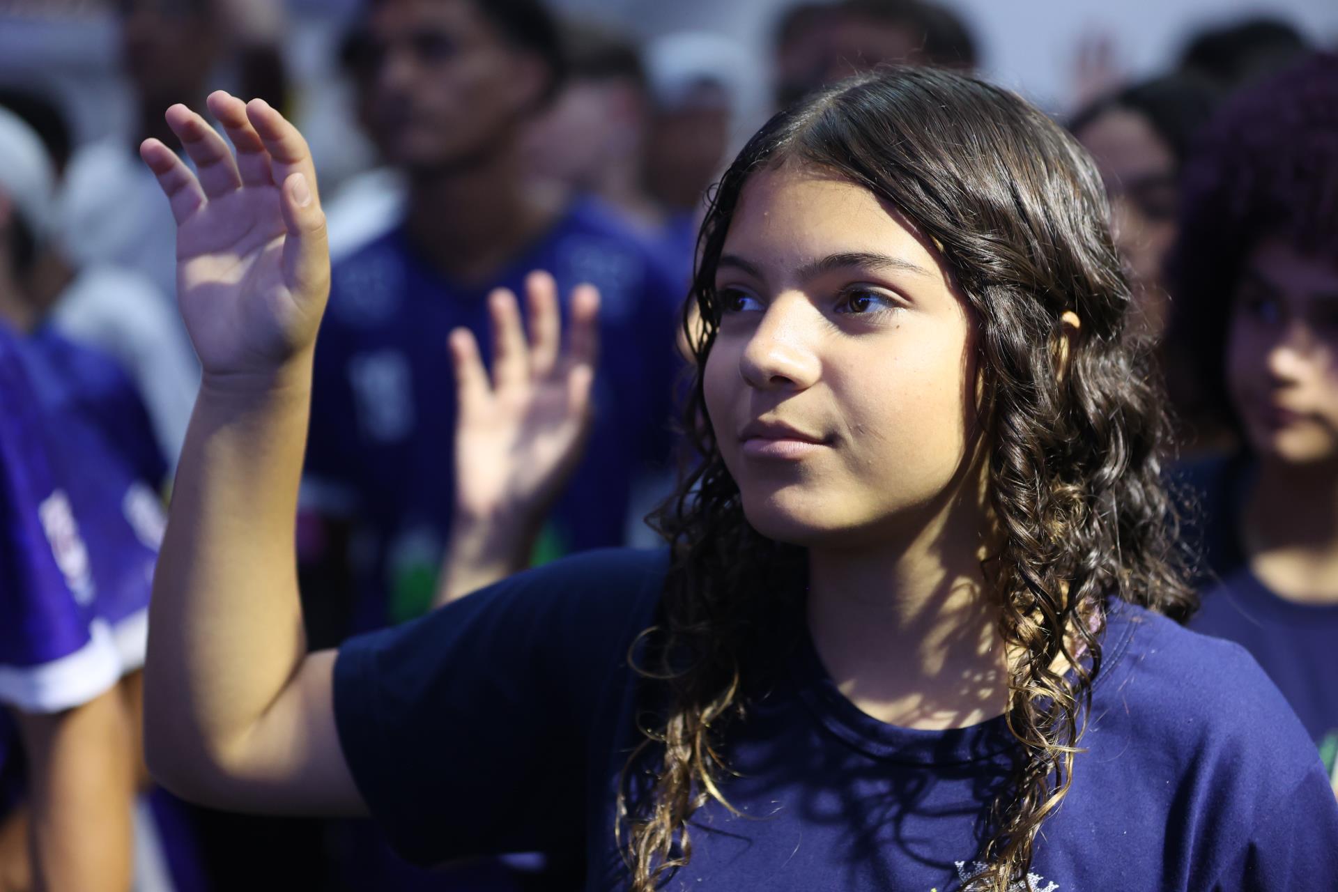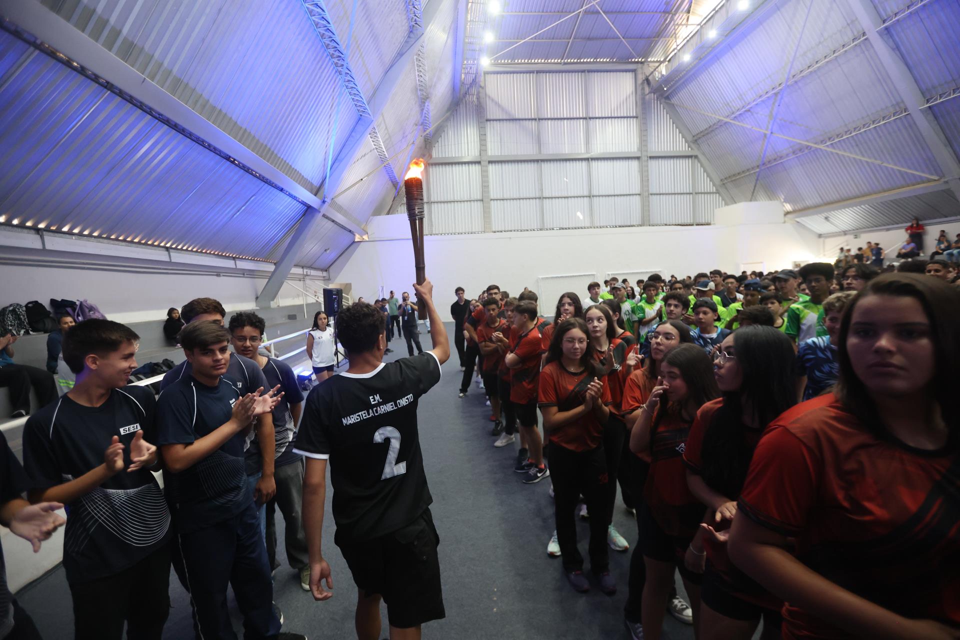 Acompanhados por gestores e professores, os estudantes-atletas das redes municipal, estadual e particular participaram do momento solene que deu início à competição, demonstrando muita energia, entusiasmo e espírito esportivo durante a entrada triunfal das delegações.