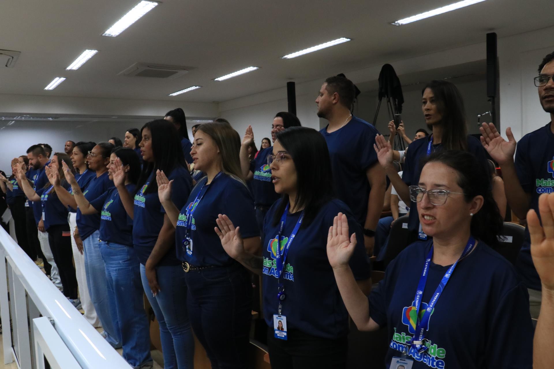 Durante a solenidade, os formandos realizaram o juramento profissional, conduzido por um representante da turma e em seguida receberam das mãos de autoridades municipais e da equipe da APS os certificados de conclusão do curso, oficializando a formação de novos agentes comunitários de saúde e de endemias, cujos profissionais atuarão diretamente no cuidado e acompanhamento das famílias de Extrema.