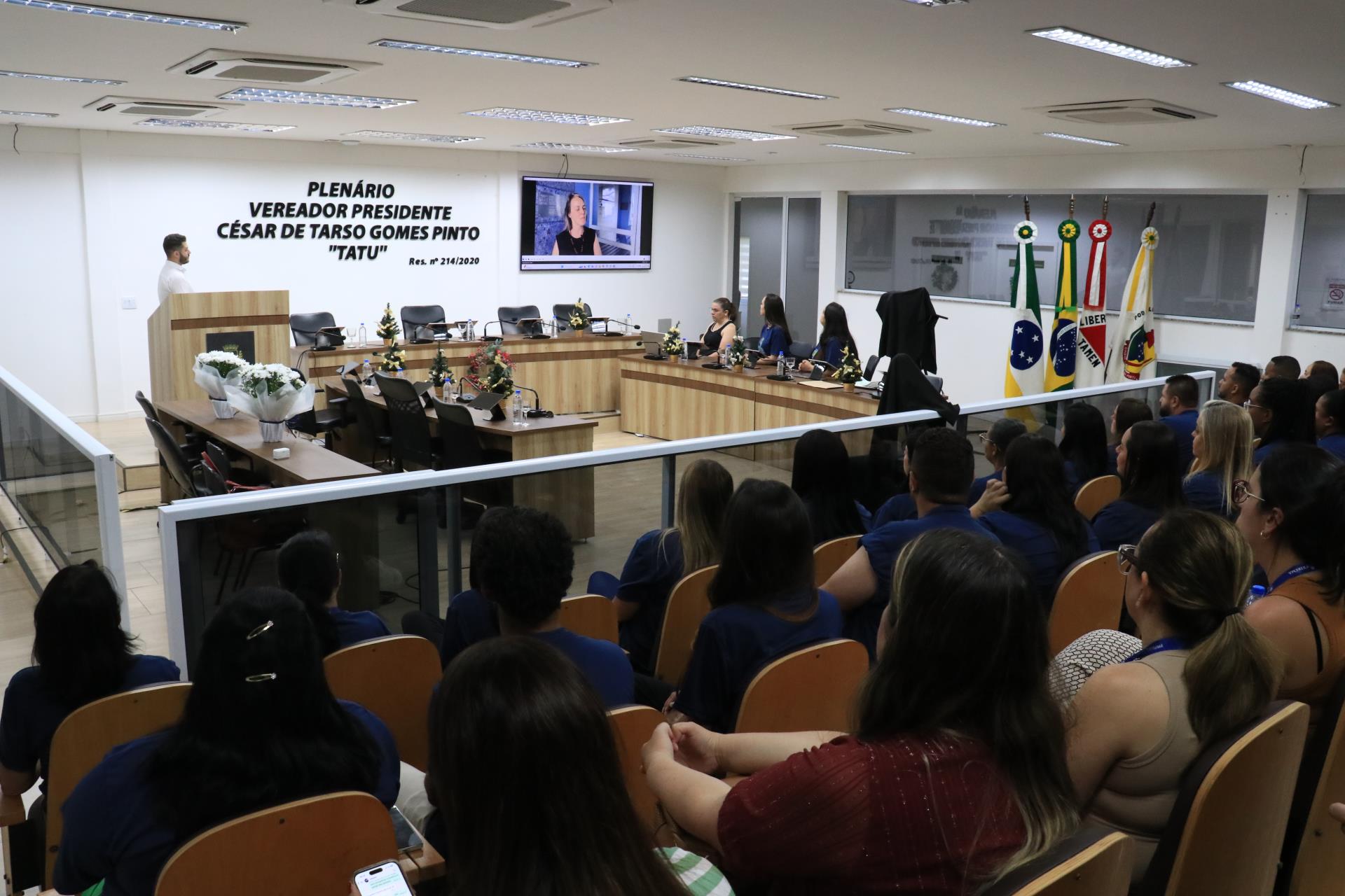 A Secretaria Municipal de Saúde celebrou, no último dia 1º de dezembro, a conclusão da segunda turma do curso técnico do Programa “Saúde com Agente”, com a formação de 33 novos agentes comunitários de saúde e 4 agentes de endemias. A cerimônia de colação de grau aconteceu no Plenário da Câmara Municipal e contou com a presença dos alunos e de toda a equipe técnica da Atenção Primária à Saúde (APS).
